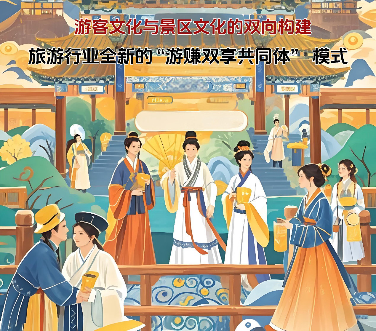 文化旅游并非仅仅是景区单方面展示文化,附着在游客身上的文化故事同样会影响景区的文化体验。以往,旅游行业往往侧重于景区打造文化体验项目来吸引游客消费,而忽视了游客在文化体验过程中也应有所收获。在 “游赚双享共同体” 模式下,深度参与沉浸体验的游客(非一般游客)理应获得应有的收入,这体现了旅游活动中文化与经济的平衡发展。